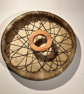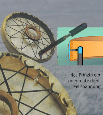 Das Prinzip Leder auf Rahmen oder Ring, als Rhytmus- o. Schamanisches Instrument, gab es wohl in der ganzen archaischen Welt. Und hat bis Heute nichts von seiner Faszination verloren.