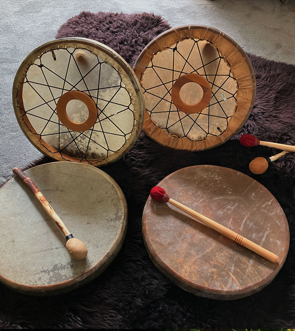 Mit viel Erfahrung (seit 1990) & Herz werden hier in der Holzwerkstatt die Trommeln & indianischen Zedernflöten gefertigt. Unsere MagicCedarDrum Rahmentrommeln sind einzigartig, ihre Resonanz-Schwingung ist enorm. Der sehr leichte Rahmen ist aus edler Rotzeder gebaut und ist mit chemiefreier Rohhaut bespannt (meist Hirsch = klingt am besten). Dazwischen ist ein aufblasbares Luftpolster, mit dem die Trommel gestimmt werden kann. So klingen diese Trommeln wetter- und Feuchtigkeits-unabhängig immer bestens. Das von uns entwickelte hintere Schnürungssystem mit dem frei schwebendem HolzRing ermöglicht ein entspanntes trommeln und eine enorme Schwingungs- und Resonanzübertragung - die es so nur bei den MagicCedarDrums gibt. Das betätigen uns auch immer wieder Kunden die bis dahin andere Rahmentrommeln gekauft hatten oder auch im TrommelBauKurs selbstgebaut hatten. Einmal MagicCedarDrum erleben und du magst nichts mehr anderes.