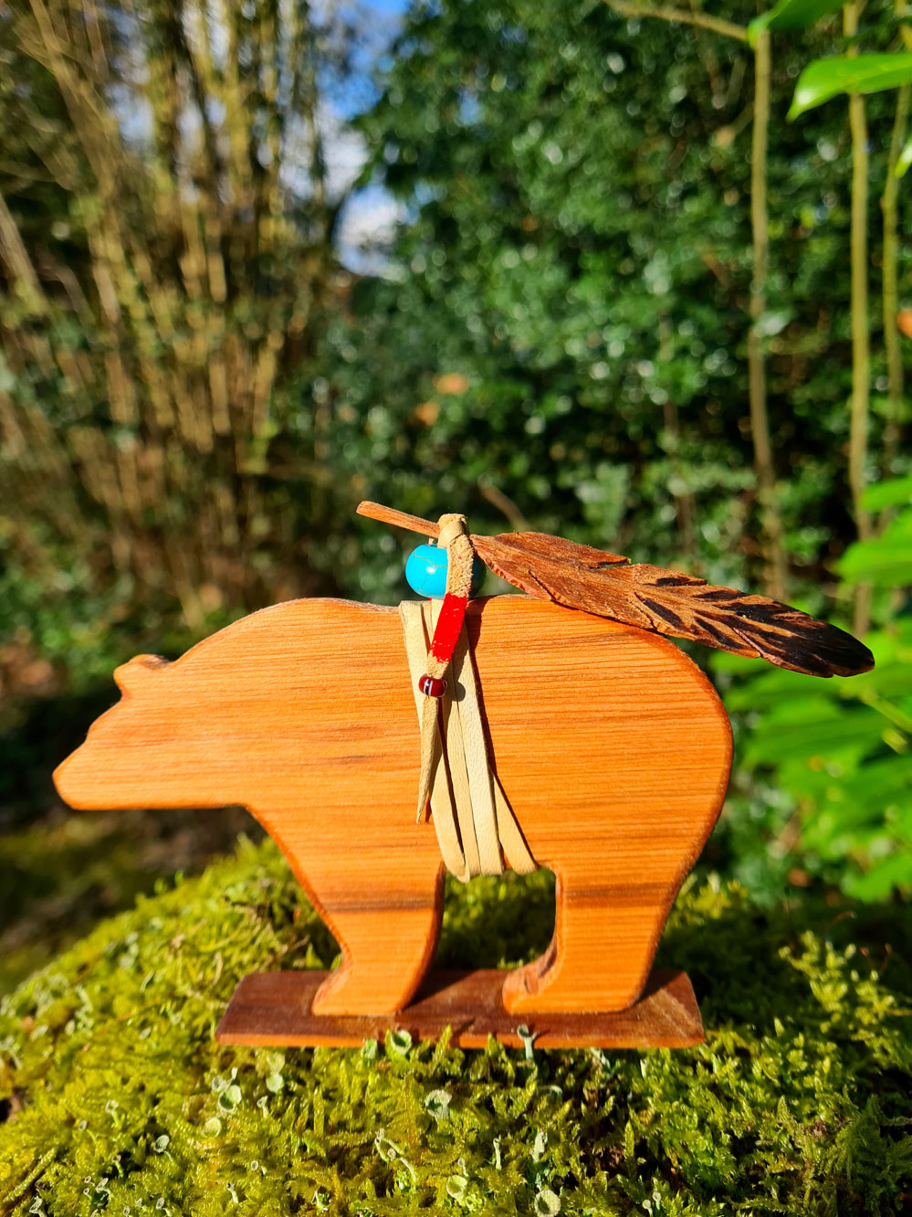 Diese kleinen einzigartigen Schmuckstücke werden individuell nach Wünschen und zum Teil in traditionellem Stil handgefertigt - meist aus dem edlem und heiligen Rot Zedern Holz. Die Tradition solcher kleinen Kraft- und Schutzfiguren geht bis in die Steinzeit zurück. Gefertigt von besonderen Personen wurde beim Bau schon Schutz und Kraft in das Objekt gegeben um dann später noch von heiligen Medizin Wissenden gesegnet zu werden. Um die Energie aufrecht zu erhalten sollte dieser persönliche Gegenstand einen schönen Platz in seinem neuen Heim bekommen und wie ein kleiner Mitbewohner behandelt und beachtet werden.