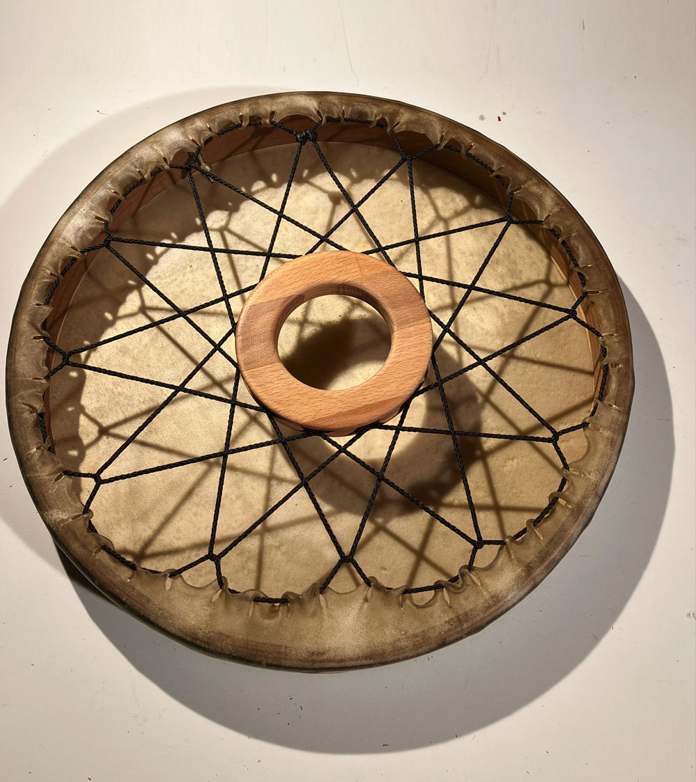 Das Prinzip Leder auf Rahmen oder Ring, als Rhytmus- o. Schamanisches Instrument, gab es wohl in der ganzen archaischen Welt. Und hat bis Heute nichts von seiner Faszination verloren.